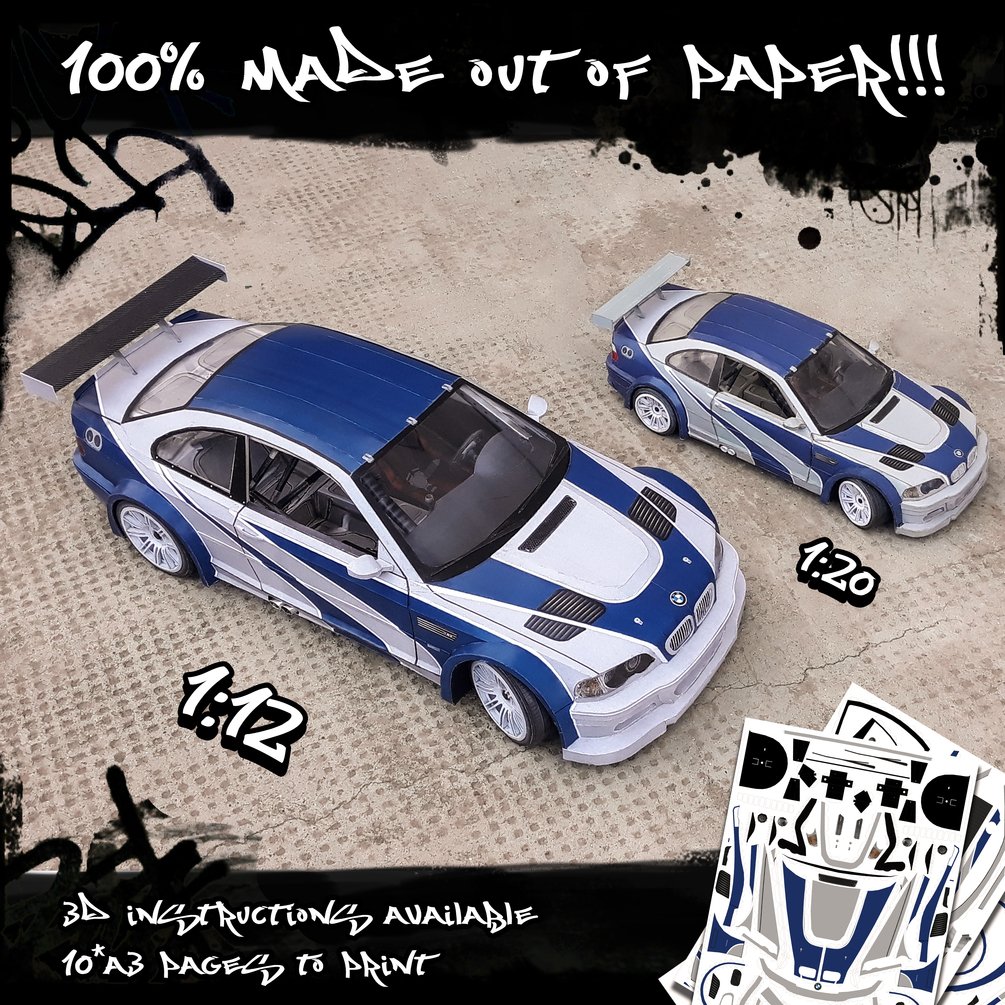 BMW M3 E46 GTR NFS Most Wanted Edition 1:12 Paper Model DIY